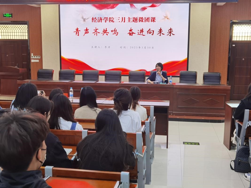 为进一步加强我院团委学生组织建设,提高学生自我服务、自我管理、自我教育、自我监督的意识和能力,3月30日下午,我院组织开展“青声齐共鸣,奋进向未来”主题团课教育。本次团课由行政党支部书记李洋主讲。