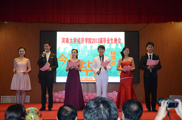 本次晚会以“今夏毕业季、致青春、致梦想”为主题。09级国贸三班学生带来的开场舞《最炫民族风》拉开了晚会的序幕。精彩的跆拳道实战表演、动听的民乐独奏、幽默的话剧《致青春》、动感的歌伴舞《凤凰花开的路口》博得在场观众的阵阵掌声。互动游戏活跃了现场氛围,将晚会推向了高潮。诗朗诵《汴京颂河大情》体现了毕业生们这四年来对学校积淀下来的感情。
